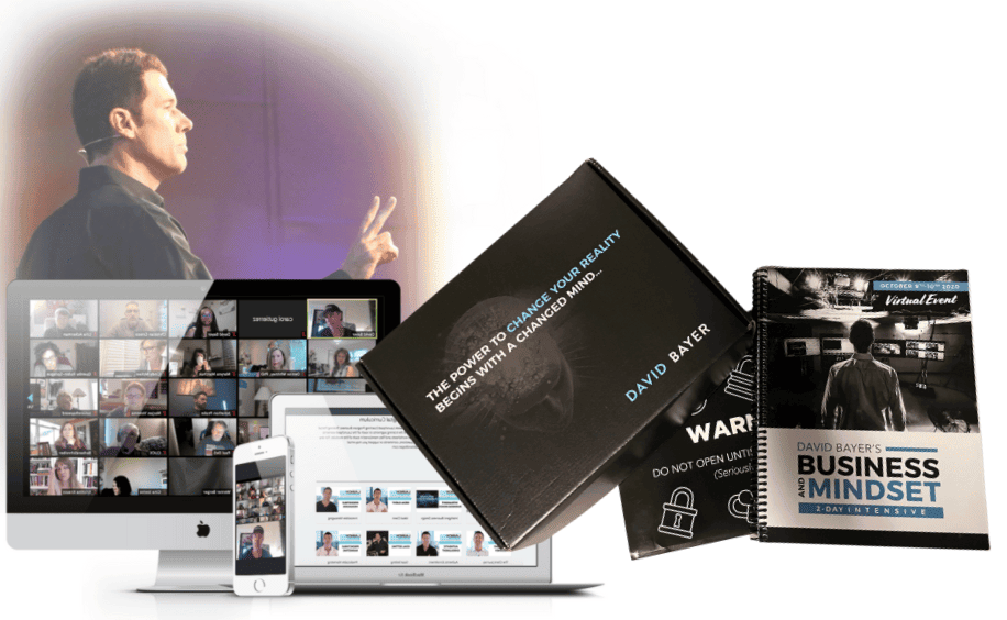 JOIN DAVID BAYER AT THE 3-DAY BUSINESS AND MINDSET 2024 LIVE VIRTUAL INTENSIVE…and dial in the strategies and the mindset you need to close out the year with more clarity, clients, and cash flow – so you can move powerfully into the new year with unstoppable momentum and take your business to the next level of growth in 2025.